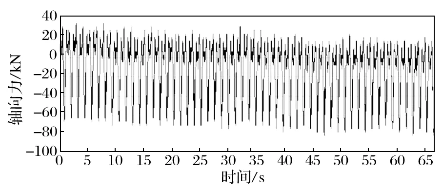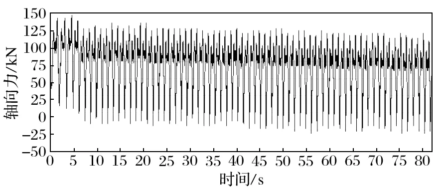 圖5 右罐重載上提時的軸向力曲線