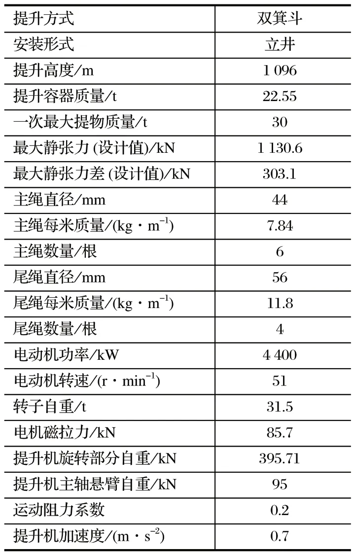 表1 提升系統的參數
