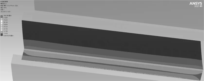 由圖6、7可知,齒面zui大接觸應(yīng)力出現(xiàn)在齒面分度圓附近,為449.6M Pa;zui大彎曲應(yīng)力出現(xiàn)在接觸齒面對側(cè)齒根,為102.38MPa。仿真結(jié)果與理論計算結(jié)果對比如表3所列,可見有限元模型計算結(jié)果與理論計算結(jié)果相一致,接觸應(yīng)力的誤差為8.3%,彎曲應(yīng)力的誤差為1.9%,選取材料的安全系數(shù)為2,則計算結(jié)果均低于材料許用應(yīng)力792M Pa,說明該模型精度可靠,齒輪滿足靜強度計算需求。