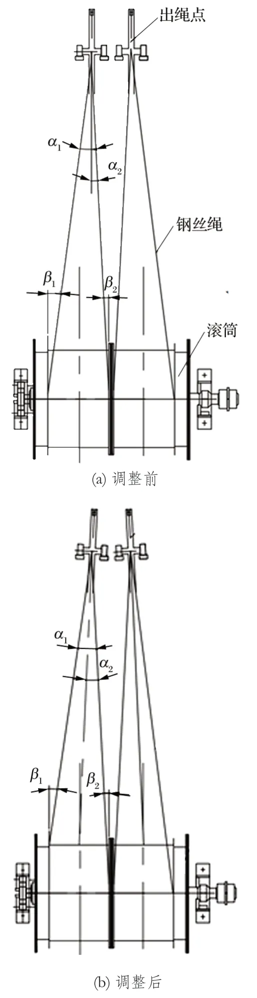 2.3 檢查調(diào)整后鋼絲繩內(nèi)外偏角