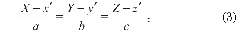 式中:X、Y 和 Z 為空間曲線移動(dòng)的 3 個(gè)面中 心點(diǎn)的坐標(biāo);x、y 和 z 為變化前的空間曲線;x′、y′和 z′為變化后的空間曲線。