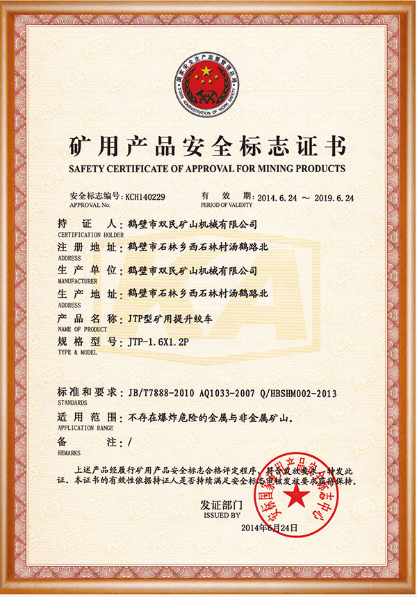 礦用產品安全標志證書
